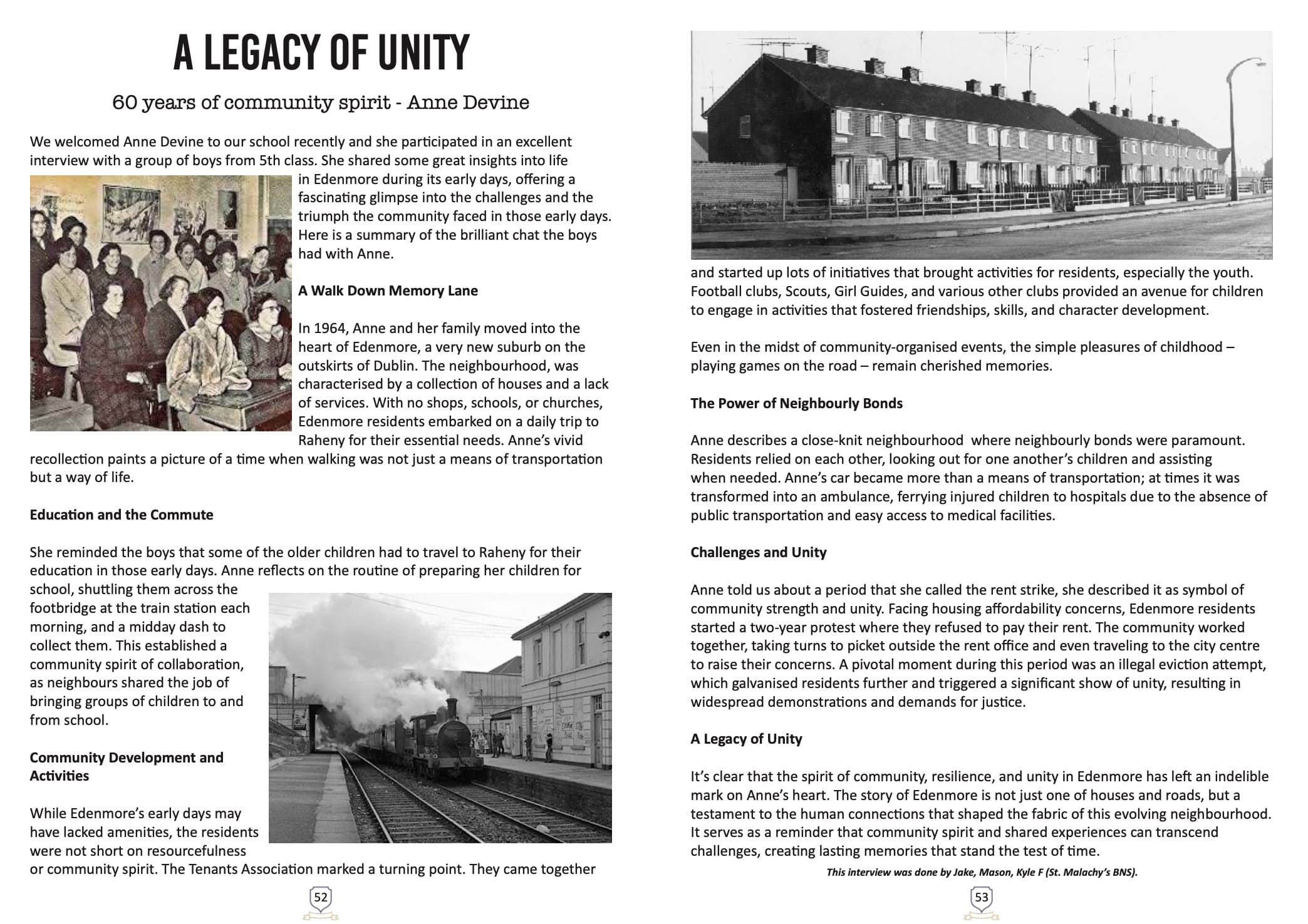 The idea for ‘Local Voices’ was conceived with the aim of bridging generational gaps and fostering a deeper connection to local history and geography. Too often, the stories of communities are forgotten or overlooked, and ‘Local Voices’ seeks to change that narrative. Through this project, children are given the opportunity to become historians and geographers, exploring the rich tapestries of their communities past and present. Over the course of their engagement, the children delve deeply into the make-up of their communities. They interview those in their community who can recall events over previous decades that shaped the social fabric of their locality and, also, those who play roles in their contemporary community.